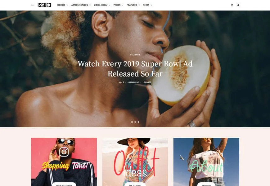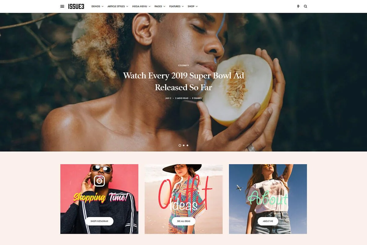 Concentrându-se pe calitate mai degrabă decât pe cantitate, The Issue a devenit una dintre temele de reviste de top. Această temă vine cu două demonstrații proaspete dedicate stilului de viață și bloggerilor de stil. Restul demo-urilor sunt mai mult de o duzină și se concentrează pe diverse nișe. Puteți folosi WPBakery Page Builder pentru a face paginile și mai frumoase. Puteți adăuga secțiuni la șabloanele de pagină și cu un singur clic. Crearea celor nouă detalii ale articolului vă va inspira cu siguranță conținutul. Acestea includ formate de postare, stiluri de galerie și stiluri de recenzii.