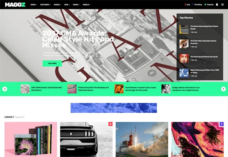 Maggz este una dintre cele mai bune teme WordPress pentru reviste pe care le-ai putea alege pentru site-ul tău. Are cea mai puternică interfață de administrare care vă permite să vă gestionați site-ul confortabil. Paginile și machetele practice vă ajută să începeți să postați imediat, fără multe activități de editare. Colecția incredibilă de coduri scurte face posibilă adăugarea cu ușurință a elementelor paginilor tale. Acest lucru este util în special dacă sunteți nou în gestionarea site-urilor web sau aveți nevoie de al dvs. să funcționeze rapid.