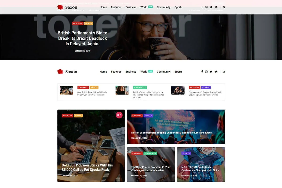 Dacă doriți ca site-ul dvs. să se concentreze în întregime pe conținutul dvs., Saxon este un loc minunat de început. Cu optimizarea Gutenberg, puteți folosi o interfață drag and drop pentru a crea pagini geniale. Aveți peste 25 de blocuri de pagini de pornire cu care să vă jucați până când găsiți combinația potrivită pentru dvs. Pentru blogurile dvs., aveți aproape o duzină de combinații posibile de layout de blog. Navigarea pe site-ul dvs. va fi incredibilă cu un cod curat care face site-ul dvs. rapid și ușor de navigat. Caracteristica Ajax Load More le permite vizitatorilor să răsfoiască mai mult conținut fără a fi nevoie să reîmprospăteze pagina.