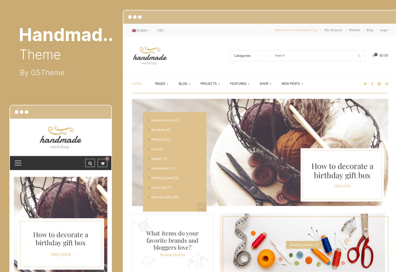 Tema Handmade a fost concepută ca o soluție excelentă pentru magazinele online care vând produse en-gros și site-uri de comerț electronic.