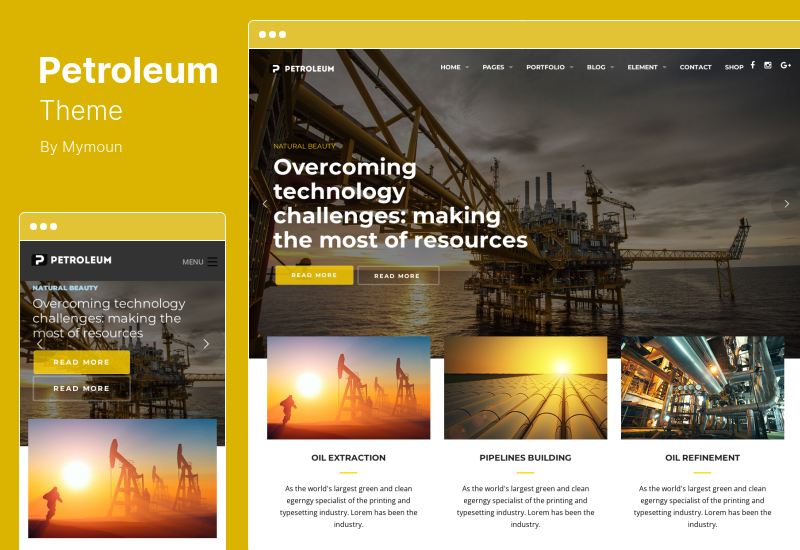 Această temă WordPress, Petroleum, oferă o temă robustă concepută în mod explicit pentru companiile de petrol și gaze care rafinează, distribuie, produc și produc petrochimice și produse chimice.