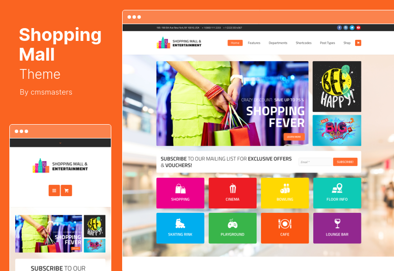 Shopping Mall are un design vibrant și modern, care îl face alegerea ideală pentru site-urile de cumpărături. Această temă este potrivită pentru mai mult decât pentru site-uri web de afaceri.