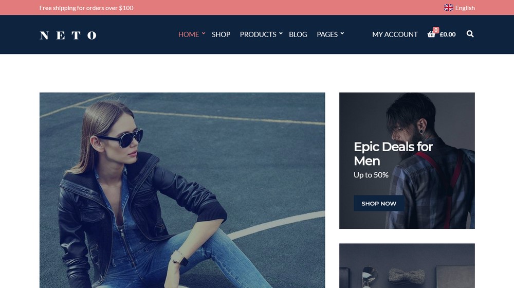Neto este o temă WooCommerce ușoară și bogată în funcții. Oferă zeci de opțiuni de personalizare care vă permit să vă modificați magazinul așa cum doriți.