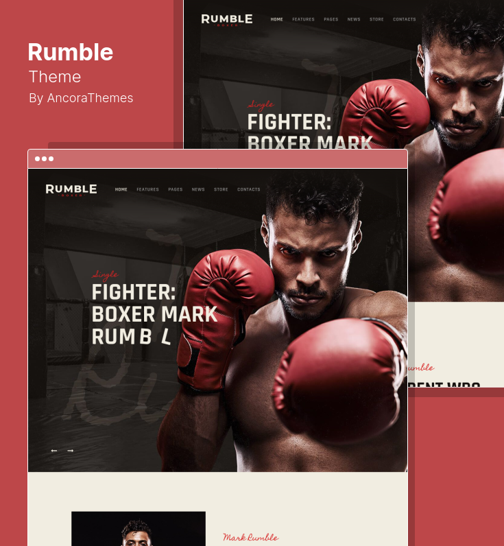 Tema WordPress Rumble este versatilă și poate fi folosită în diverse scopuri dacă ești un luptător și un pasionat de MMA. Este potrivit pentru o revistă, un club de karate, o sală de box, o secțiune Muai-Thai, evenimente de luptă, promoții de box și antrenamente de luptă, printre altele.