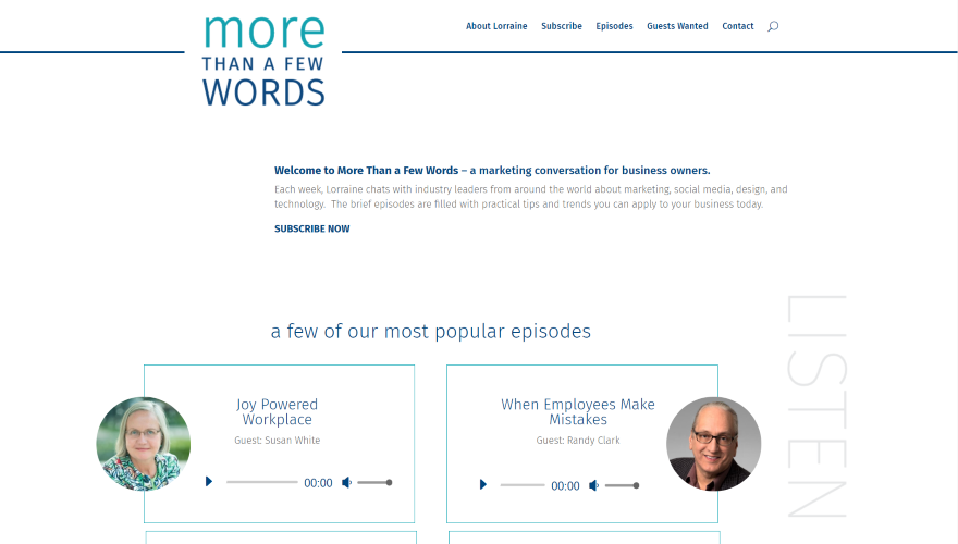 Acest site a fost trimis de Britt Baue. Meniul afișează o siglă care se suprapune urmată de un mic mesaj de întâmpinare. Partea principală a paginii include o mulțime de epsiod-uri podcast încorporate cu playere audio stilate. Prima secțiune prezintă podcast-uri în două coloane cu un titlu vertical și un link pentru a afla mai multe. O secțiune de text cu informații despre spectacol include un titlu vertical pe partea opusă. O altă secțiune include titlul și afișează o listă de podcast-uri cu un player audio lângă un formular de contact. Urmează această secțiune cu linkuri pentru a vă abona la podcast de la toate gazdele majore. Pagina Despre adaugă o listă de subiecte și un glisor de mărturie stilizat. Designul folosește mult spațiu alb și un aspect minimal, care arată curat și elegant.