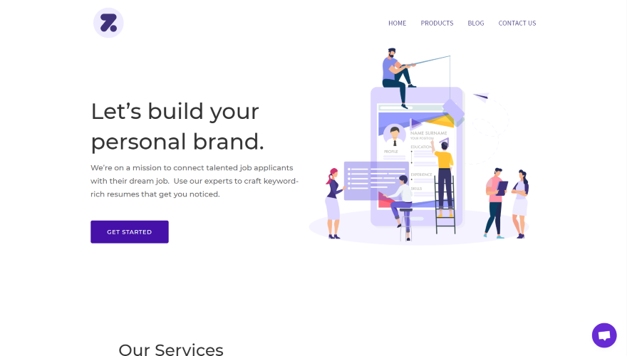 Acest site a fost trimis de Nicole Marie Zinnanti. Site-ul folosește o mulțime de spațiu alb, cu cantitatea potrivită de grafică violetă și evidențiere. Secțiunea erou prezintă un CTA pe o parte și un grafic al oamenilor care construiesc un CV pe cealaltă. Următoarea secțiune arată serviciile din blub-uri care utilizează grafică violet și alb și margini și umbre violete. Un videoclip încorporat este plasat peste un model de fundal care arată puncte în jumătatea superioară din stânga și în jumătatea inferioară din dreapta. Blurbs cu pictograme stilate arată avantajele într-un aspect curat cu 3 coloane. Designul include, de asemenea, un CTA cu grafică, secțiunea de blog stilizată și un CTA cu butoane pentru a crea un subsol personalizat. Îmi place și blogul. Afișează o imagine completă cu antet cu un divizor diagonal și apoi carduri de blog într-o grilă curată.