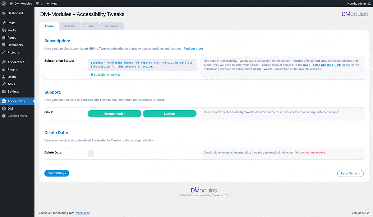 Pe lângă pluginul în sine, există module Divi suplimentare disponibile pentru a completa bara laterală de accesibilitate. Primul este Accesibility Tweaks (19 USD pe an), un modul Divi care ajustează automat modulele și codul site-ului dvs., facilitând navigarea vizitatorilor pe site-ul dvs. Adaugă controale de la tastatură pentru modulele Divi, cum ar fi file, acordeoane și comută, din cauza lipsei suportului pentru tastatură. De asemenea, a adăugat navigarea prin tastatură pentru meniuri, un inel de focalizare pentru elementele peste care trece mouse-ul și link-uri directe către zonele antet și subsol.