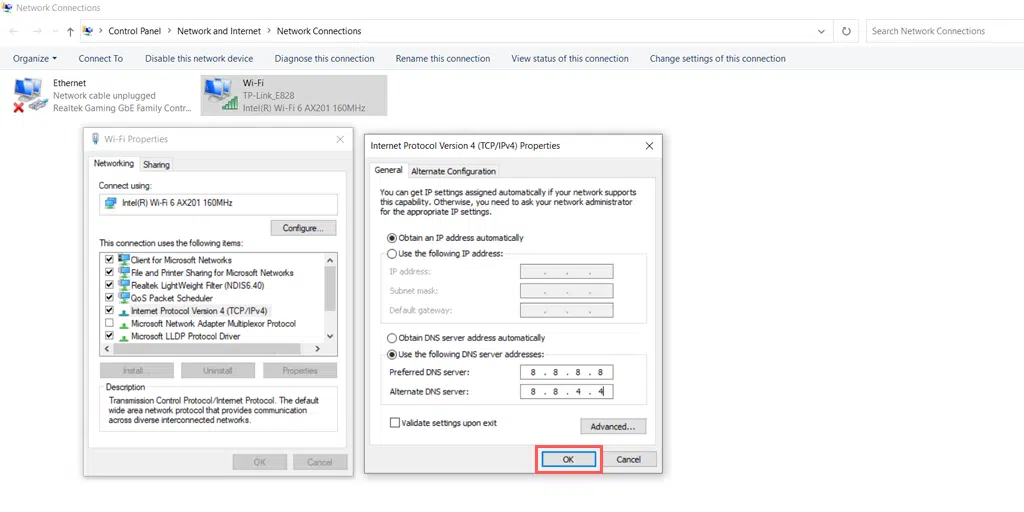 7. Schimbați serverul DNS pe Windows 10