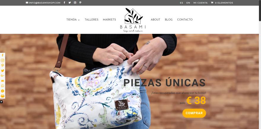 Basami Shop arată un magazin CTA într-un glisor pe ecran complet. O secțiune de alte produse și o secțiune de favorite includ umbre de cutie. Paginile de categorii afișează categorii în bara laterală, o descriere a categoriei și apoi a produselor. Paginile produsului prezintă o imagine mare a produsului, galeria de produse și apoi zona de descriere. Această zonă este concepută pentru a se potrivi site-ului și include produse conexe.