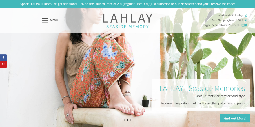 Lahlay prezintă un glisor pe ecran complet cu CTA-uri pentru mai multe produse. Include un mega-meniu care se ascunde în scroll. Mai multe secțiuni de pe pagina de pornire prezintă produsele cu imagini mari și umbre de cutie. Alte câteva secțiuni oferă informații despre produse cu imagini. Paginile de categorii prezintă o mulțime de fotografii și informații în acordeonuri stilizate, împreună cu un modul de magazin stilat. Produsele sunt afișate în ferestre pop-up. Acest site are una dintre cele mai interesante pagini de categorii / produse pe care le-am văzut.