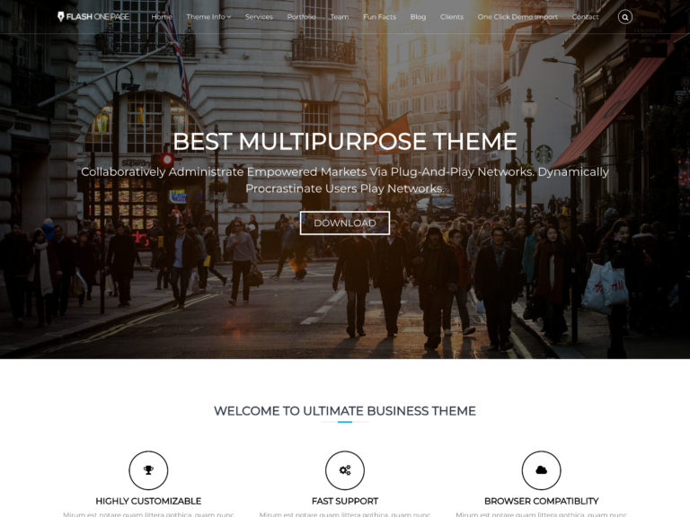 Flash este o altă temă WordPress gratuită de o pagină, demnă de atenție. Această temă este polivalentă prin design și funcționalitate, ceea ce o face o alegere excelentă pentru afaceri de toate tipurile.