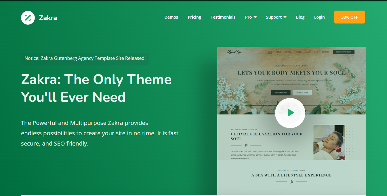 Tema care a reușit să-și facă loc în lista noastră de top de teme poate fi descrisă ca Zakra Shop . Zakra este o temă contemporană sofisticată, elegantă și puternică gratuită, care acceptă pluginul WooCommerce . Zakra se integrează și în pluginul său Elementor , astfel încât este posibil să prezentați orice articol sau categorie de produse chiar pe pagina de pornire.