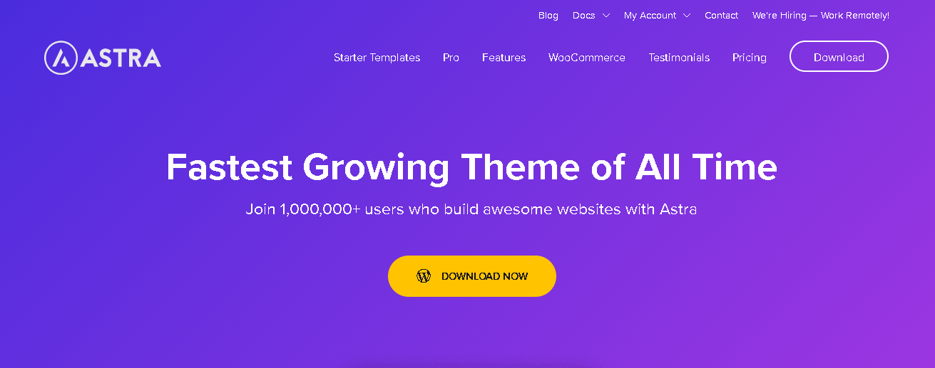 O temă complet personalizabilă Astra este ideală pentru a vă crea portofoliul, blogul, precum și un site web de afaceri sau comerț electronic . Cea mai bună parte este că această temă este construită cu codul Schema.org și este pregătită pentru AMP nativ. Astfel, motoarele de căutare vor adora site-ul tău.