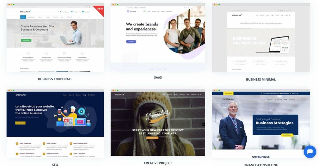 Vă voi recomanda temele dvs. multifuncționale, cum ar fi Specular, care vă permit să creați site-uri web nelimitate datorită celor peste 30 de demonstrații.