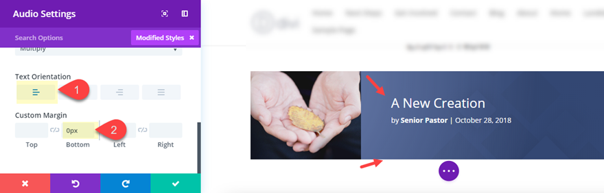 Acum, tot ce va trebui să faceți în viitor este să salvați aspectul în biblioteca Divi pentru a fi folosit pentru postările de predici viitoare. Și din moment ce aveți grupul dvs. de câmpuri personalizate gata pentru a începe toate proiectele, puteți actualiza pur și simplu informațiile despre câmpul personalizat de pe backend, fără a fi nevoie să deschideți Visual Builder.