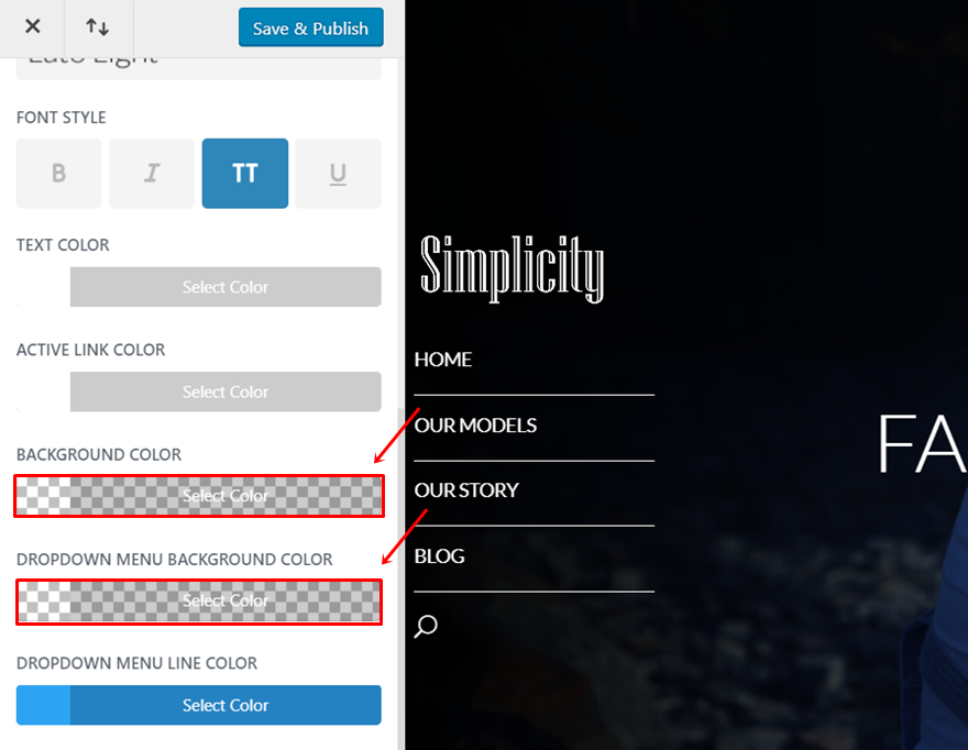 Dacă alegeți o culoare deschisă a fontului în navigarea verticală transparentă, asigurați-vă că imaginile de fundal sau culorile conțin culori închise. La fel, dacă utilizați o culoare de font întunecată, asigurați-vă că imaginile de fundal sau culorile pe care le utilizați au culori deschise.