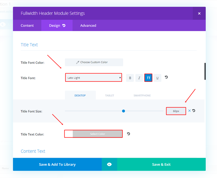 De asemenea, derulați în aceeași filă și efectuați următoarele modificări la subcategoria Text de titlu: