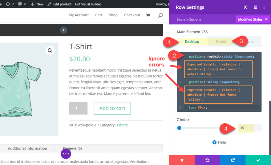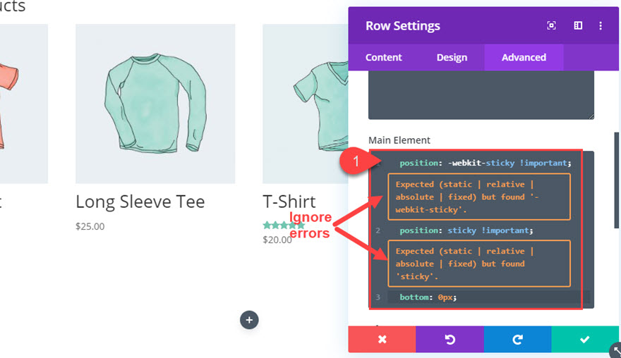 NOTĂ: Așa cum am făcut mai devreme, puteți ignora erorile care apar atunci când adăugați poziția: proprietate lipicioasă.