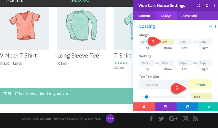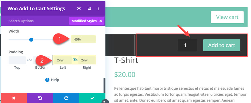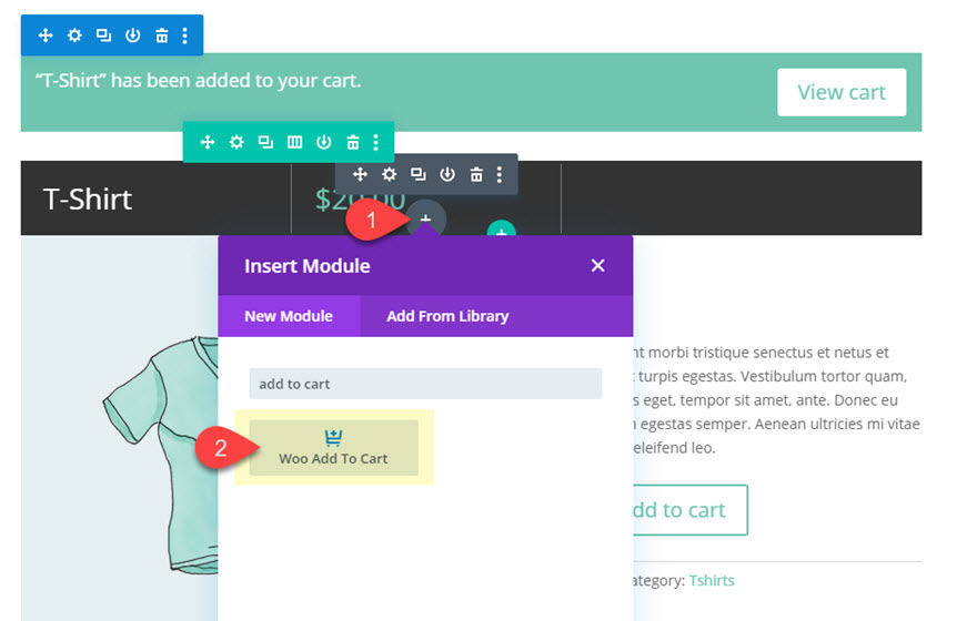 În acest caz de utilizare, vom proiecta o bară lipicioasă pentru produsele WooCommerce folosind modulele Woo ale Divi. Bara lipicioasă poate include orice modul Divi. Pentru acest tutorial, vom crea o bară lipicioasă care include butonul „Adaugă în coș”, astfel încât să rămână vizibil pe măsură ce utilizatorul derulează pagina. În plus, vom crea, de asemenea, o bară de notificare lipicioasă pentru coș, astfel încât utilizatorii să poată vedea întotdeauna butonul „Vizualizare coș” după ce se face clic pe butonul „Adaugă în coș”.