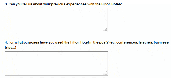 Oamenii sunt ocupați și nu vor să piardă timpul introducând răspunsuri pe formularul dvs. de sondaj, cum ar fi cele văzute aici în formularul de sondaj Hilton Hotel Service Experience.