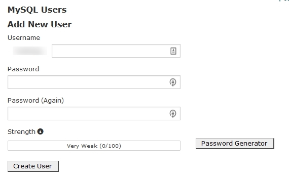 - Creați un nou utilizator al bazei de date în secțiunea Adăugați un utilizator nou . Asigurați-vă că ați înregistrat numele și parola