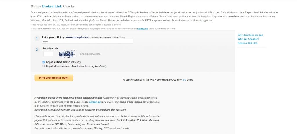 Aplicația web va verifica site-ul dvs. pentru orice linkuri întrerupte și le va evidenția sub butonul.