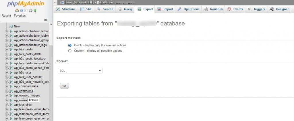 Deoarece mutați doar domeniul și nu găzduirea web, nu trebuie să vă exportați baza de date. Cu toate acestea, ar putea fi util să aveți o copie completă a bazei de date, așa că tratați acest lucru ca pe un pas opțional.