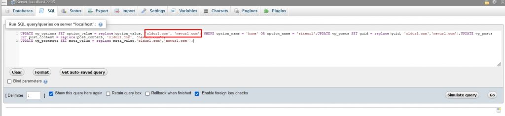 Schimbați fiecare instanță de „oldurl” cu vechiul domeniu și „newurl” cu noul domeniu.