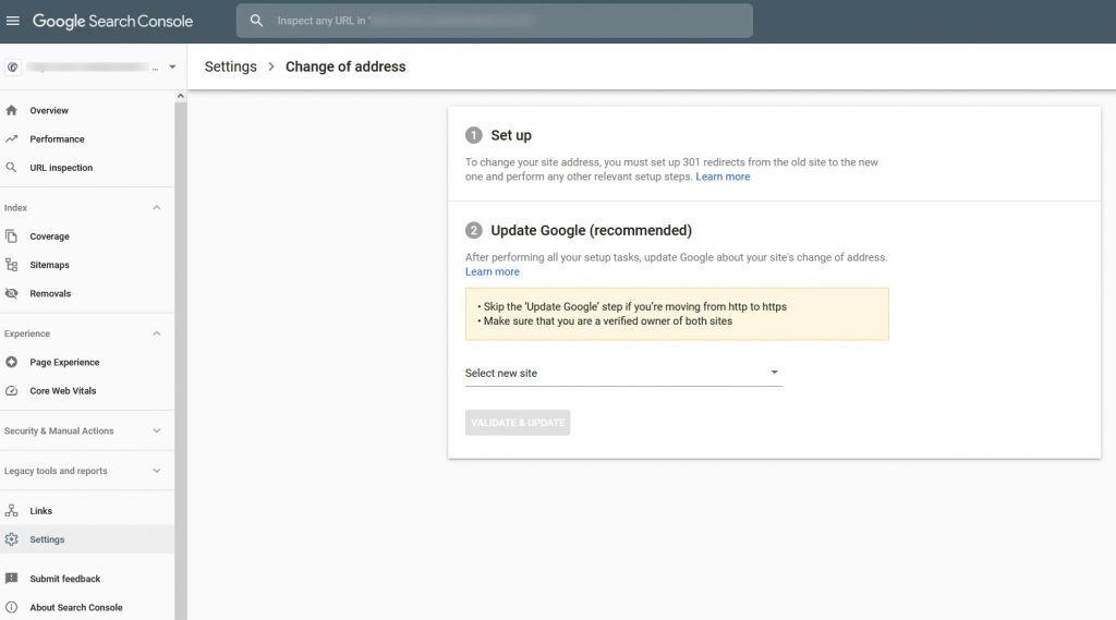 Deoarece mutarea domeniilor este o apariție relativ comună, Google are un instrument specific de schimbare a adresei în Search Console.