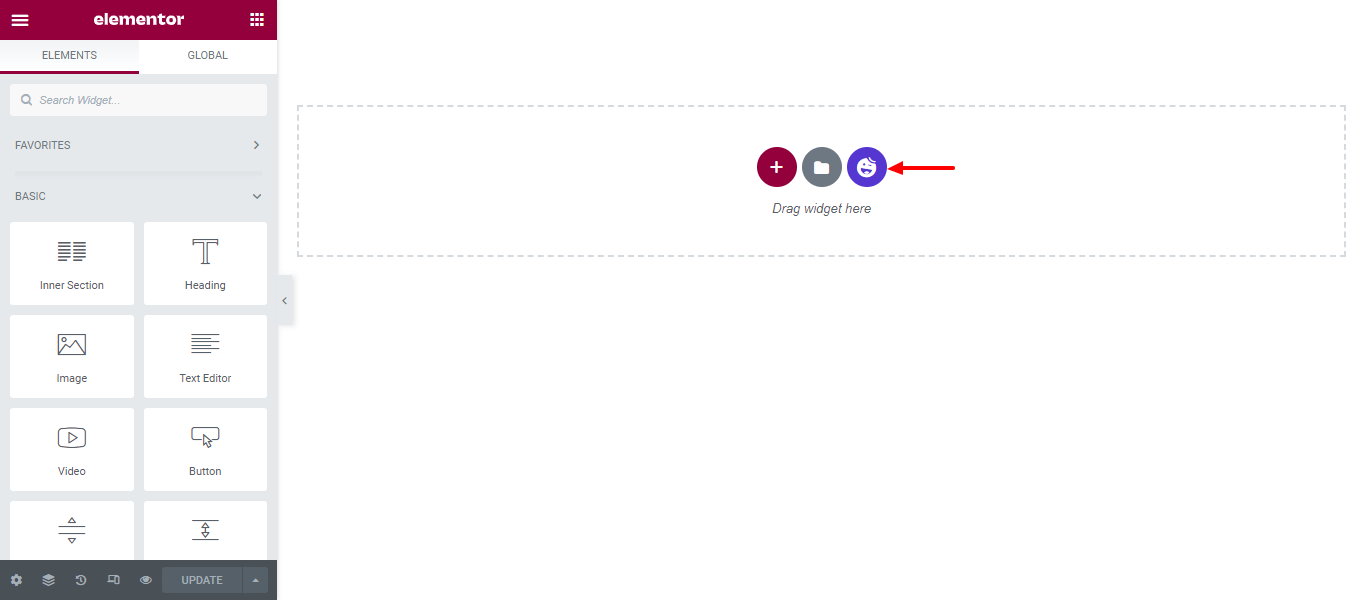 După deschiderea paginii în panoul editor Elementor, trebuie să faceți clic pe pictograma Happy Template Library pentru a accesa biblioteca.