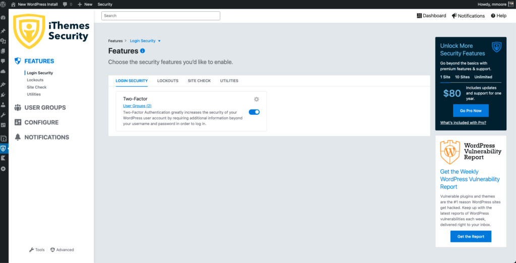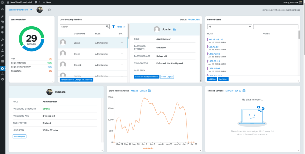 iThemes Security 8.0 adaugă câteva noi funcții puternice pentru a vă asigura securizarea site-ului chiar mai ușor: un tablou de bord al activității de securitate în timp real, autentificare în doi factori și capacitatea de a refuza parolele compromise.