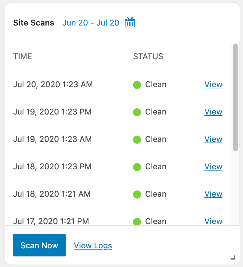 Vedeți istoricul scanărilor site-ului de securitate iThemes.