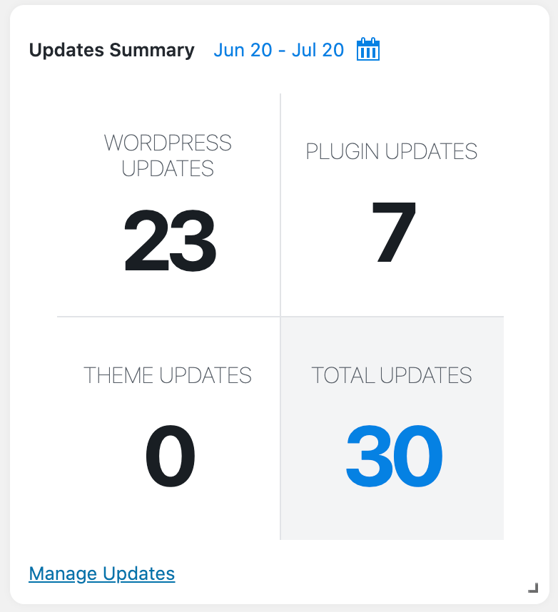 Afișați numărul de actualizări WordPress, plugin și temă într-un anumit timp.