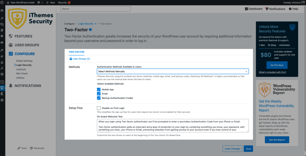 Tabloul de bord Security nu este singura funcție nouă care vine în iThemes Security 8.0. Acum, iThemes Security oferă autentificare în doi factori pentru a vă securiza toate datele de conectare WordPress!