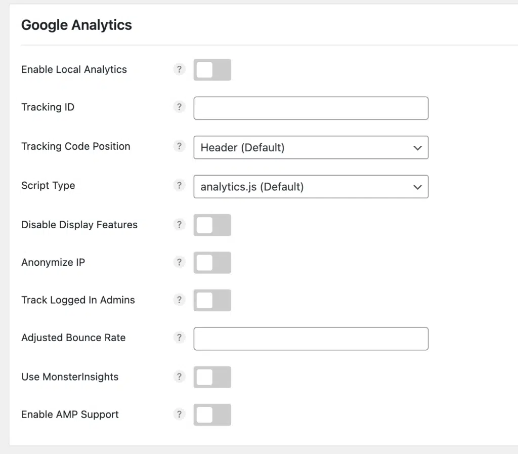 Cu pluginul Perfmatters WP, puteți alege dintre cinci scripturi de cod Google Analytics diferite: analytics.js (17 KB), gtag.js, gtag.js v4, minimal (doar 1,5 KB) și minim inline.