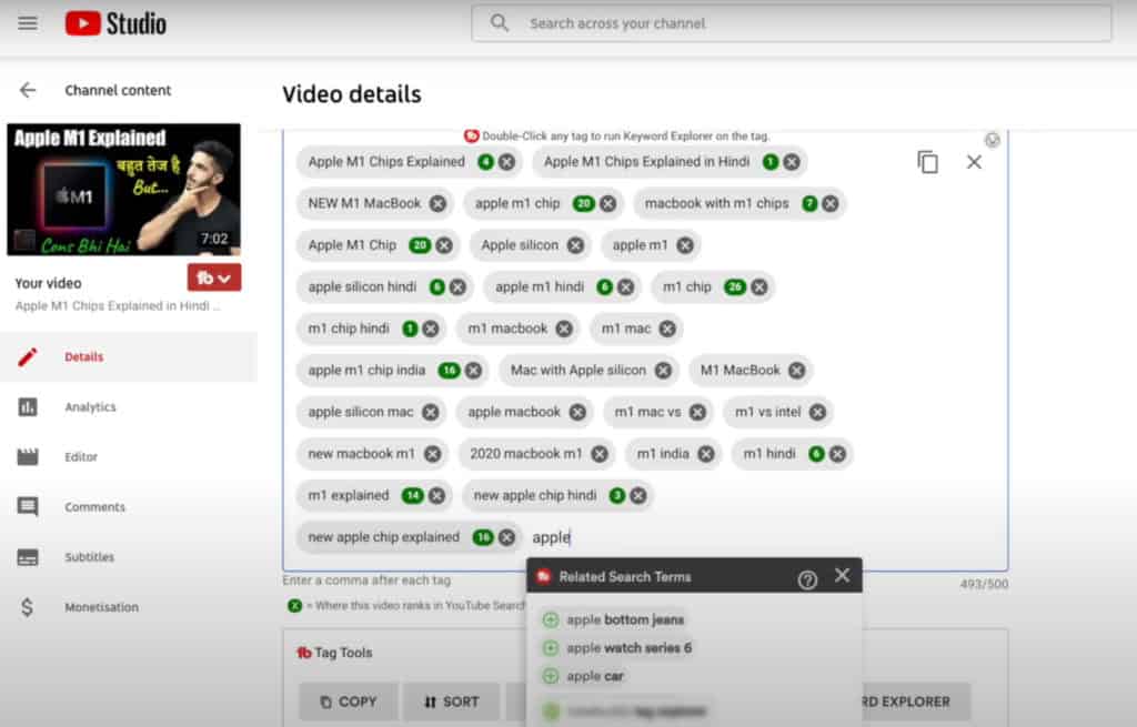 Făcând clic pe Boost, se vor afișa o serie de sugestii de etichete împreună cu scorul lor SEO. Pur și simplu puteți continua să adăugați cuvinte cheie, acesta sugerează automat cuvinte cheie relevante pe care le puteți adăuga în descriere și titlu pentru a îmbunătăți SEO.