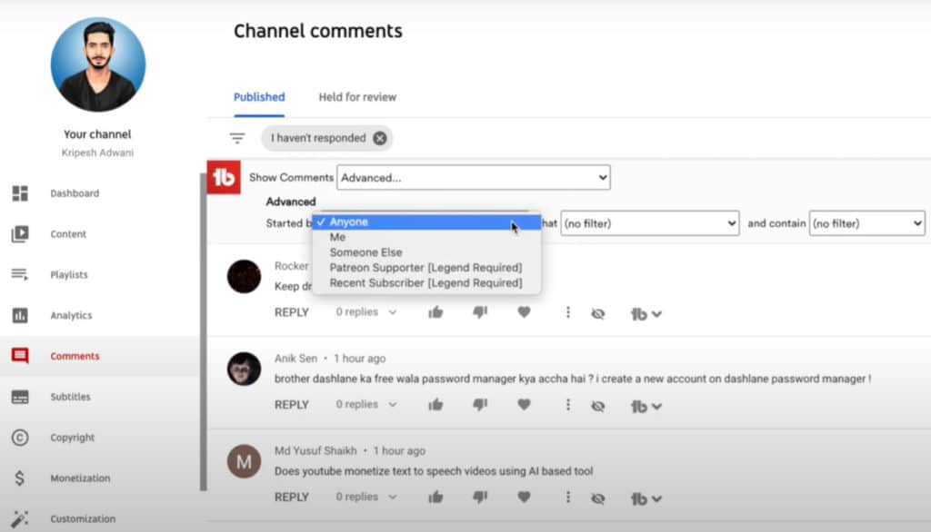 TubeBuddy are unul dintre cele mai bune instrumente de gestionare a comentariilor de acolo.