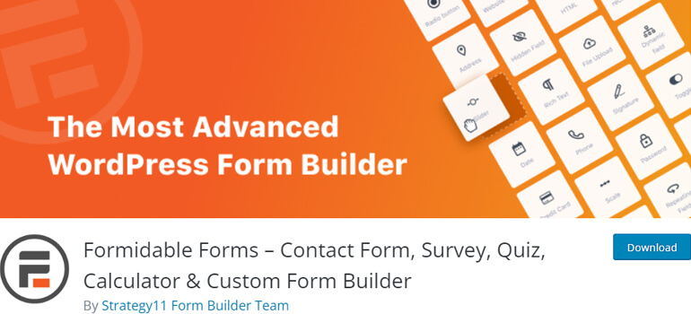 În continuare, avem Formulare formidabile pe lista noastră. Acest plugin inovator vine cu un stilator vizual special. Prin urmare, puteți personaliza cu ușurință orice formă pentru a se potrivi cu temele dvs. WordPress.