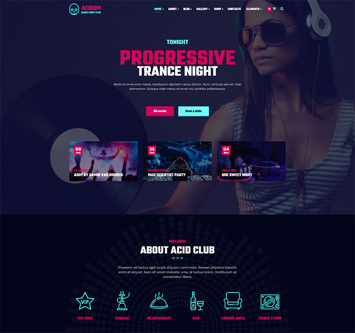 Эта тема содержит все, что вам нужно: домашнюю страницу с профессиональным дизайном, более 20 уникальных шорткодов, галереи, блог, отзывы, каталог продуктов, страницу продукта, о ночном клубе, корзину, заказ и другое.