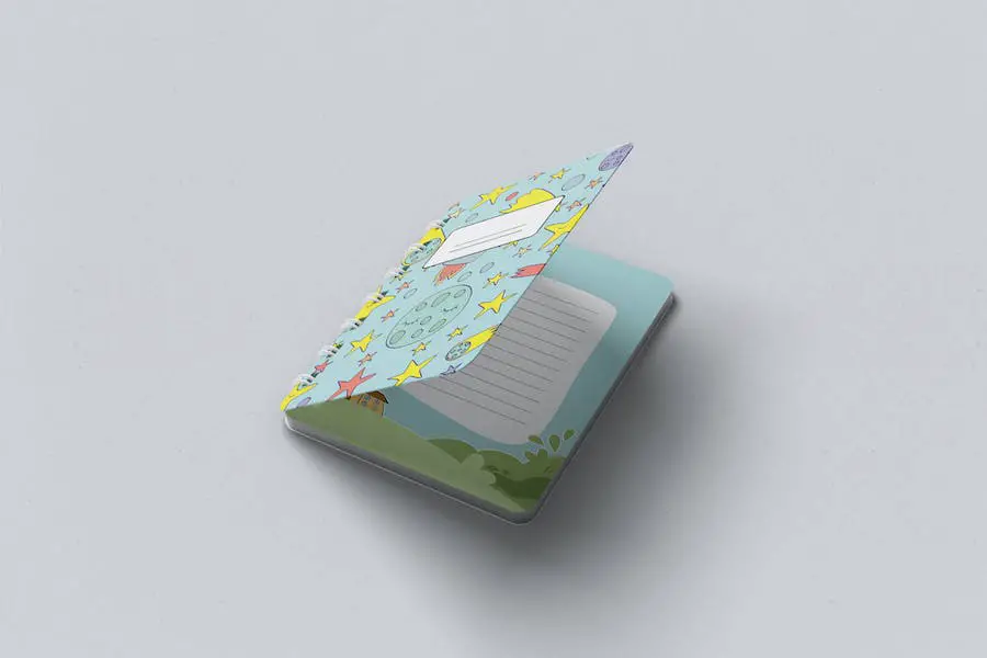 Шаблон идеально подходит для брендинга или магазинов канцелярских товаров, поскольку позволяет профессионально и реалистично продемонстрировать свой логотип и корпоративные цвета.