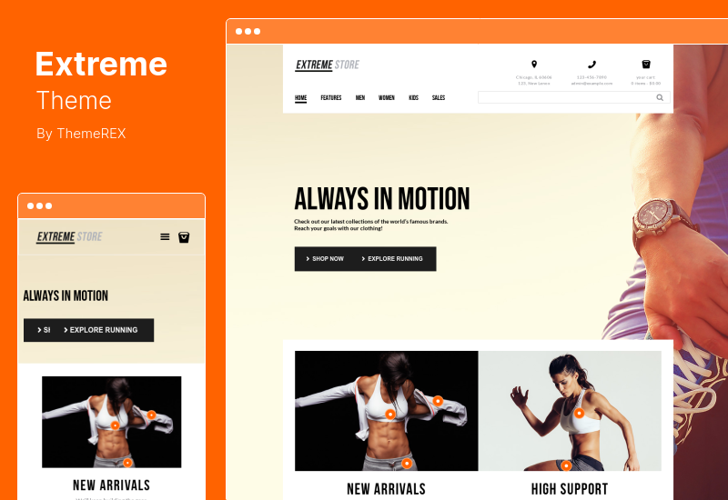 Extreme Woocommerce — это современная, отзывчивая тема WordPress для магазина спортивной одежды и снаряжения, разработанная для интернет-магазинов, предлагающих высококачественную спортивную обувь и одежду.