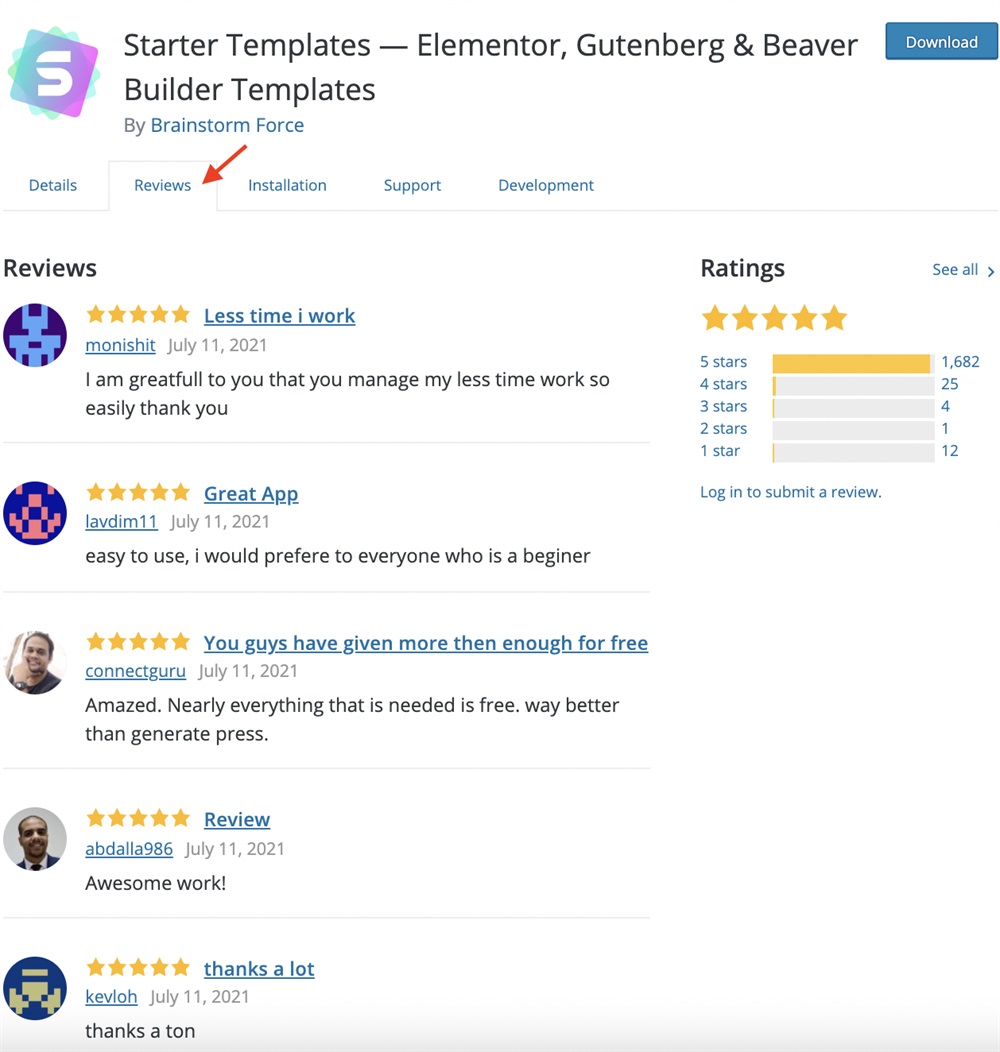 Обзоры — это место, где можно увидеть, насколько счастливы пользователи плагина. Большинство людей проверяют плагины, которые они ценят, или публикуют свои жалобы.