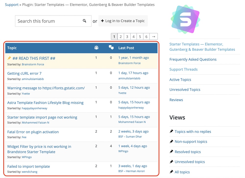 Вы можете перейти на вкладку «Поддержка» на странице плагина в каталоге плагинов WordPress, чтобы найти форум поддержки для плагина.