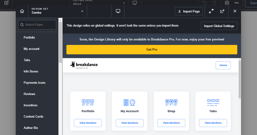 Процесс проектирования брейкданса прост. Открыв страницу, которую необходимо изменить, вы увидите набор готовых шаблонов.