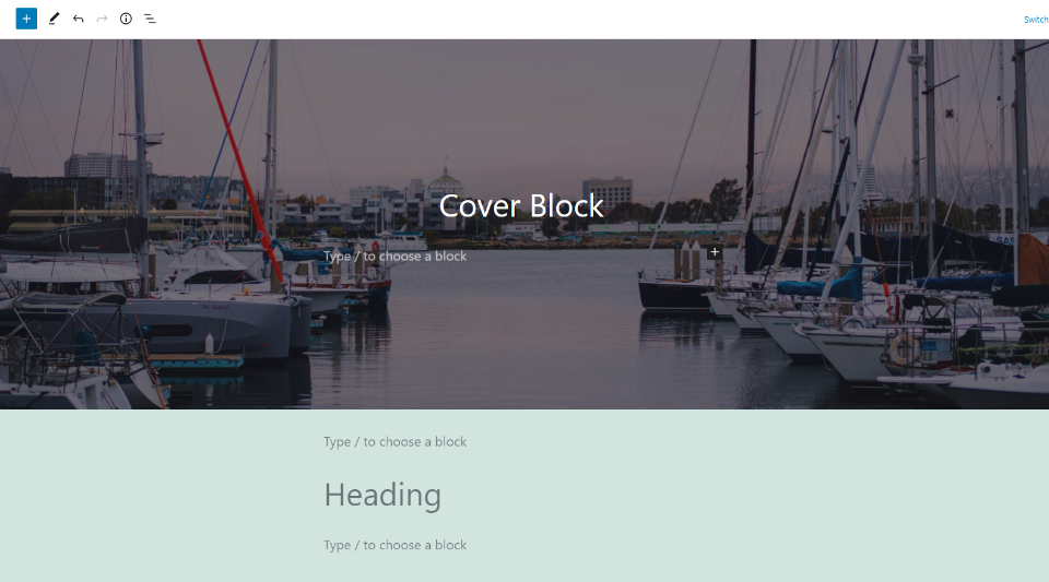Вы можете использовать блок обложки для создания фона с призывом к действию, использовать его для создания заголовка над разделом, создания плакатов, разделов с героями или всего, что вы хотите, чтобы изображение или видео было в фоновом режиме.