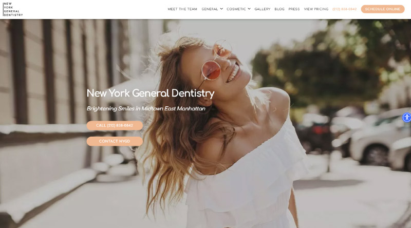 New York General Dentistry имеет удивительный веб-сайт, который, на первый взгляд, даже не говорит много о стоматологии, и тем не менее им удается добиться высокого уровня доверия и доверия . Их бизнес основан на предоставлении персонализированных стоматологических услуг, поэтому изображения и элегантная сцена героя отражают индивидуальный подход.