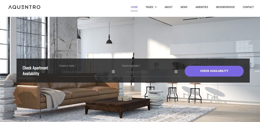 Aquentro считается лучшей темой WordPress для аренды недвижимости со встроенным плагином для бронирования. Эта тема выделяется среди других благодаря хорошо продуманным шаблонам страниц и пользовательским виджетам Elementor от Stratum. Кроме того, вы можете синхронизировать наличие мест на нескольких платформах и управлять онлайн-бронированием с панели управления.