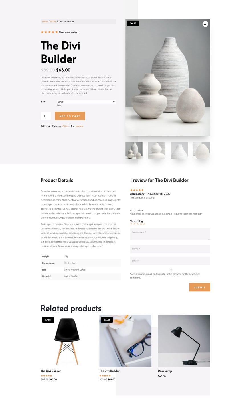 Теперь, когда у вас есть все 14 макетов продуктов в библиотеке Divi, вы можете легко добавить их к любому продукту в своем магазине.