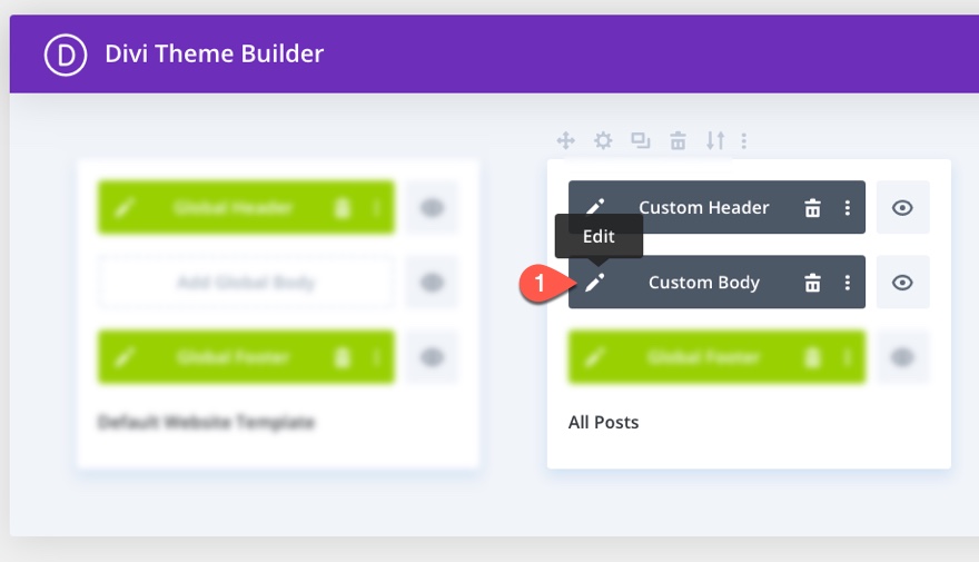 Теперь заголовок должен быть серым с надписью «Custom Header». Когда все будет готово, щелкните значок редактирования, чтобы отредактировать шаблон макета заголовка.