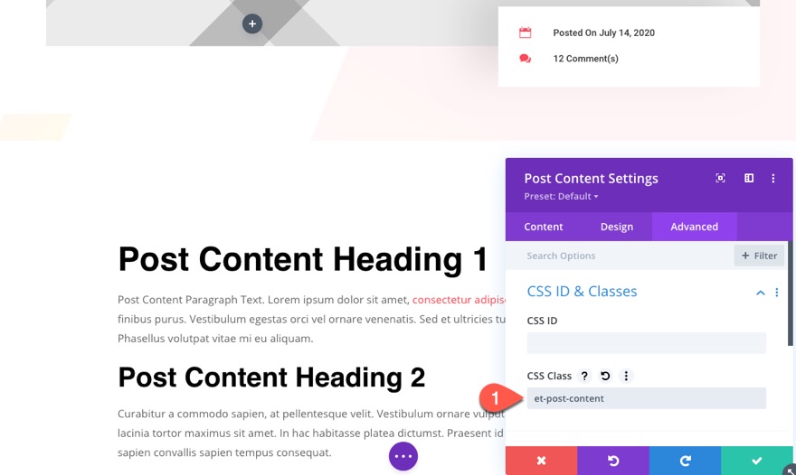 Если вы не используете настраиваемый шаблон тела для сообщения и хотите добавить индикатор выполнения чтения в шаблон сообщения блога по умолчанию в Divi, все, что вам нужно сделать, это обновить один класс CSS в коде.